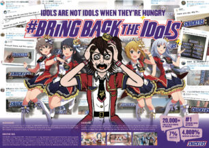 人気コンテンツ アイドルマスターとコラボ。おなかが減りすぎたアイドルたちは、楳図かずおオリジナル描き下ろしのホラー風キャラに変貌! ファンたちがスニッカーズを与えることでアイドルの自分たちを取り戻す。SNSを駆使したブランデッドエンターテインメント